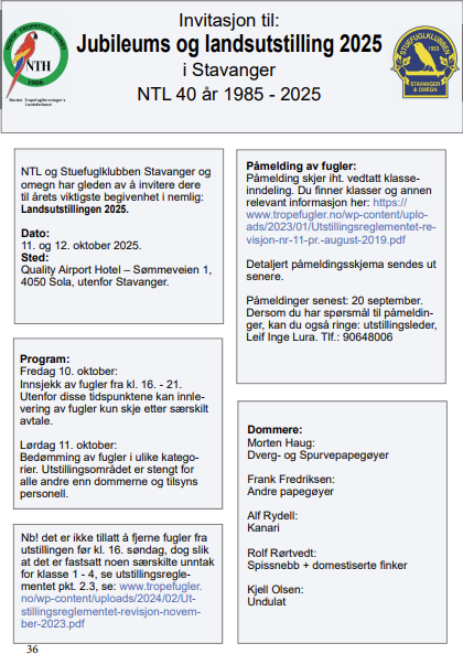 Tropefugler 2025 /Aktuelt/ by design Forrige innleggVil du bli dommer? Neste innleggInvitasjon til landsutstilling 2025